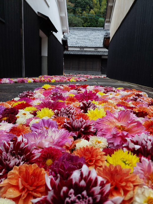 大和と東海を結ぶ交通の要衝、宇陀の中心地として栄えた宇陀松山の歴史的町並みは、史跡宇陀松山城跡の西麓に整然と町家が並ぶ、水路が印象的なまちです。今回のはならぁと宇陀松山は、旧芝居小屋「喜楽座」に映像作家の黑田菜月を迎えるほか、ダリアの花を路地に敷き詰める「宇陀松山華小路」、今回初めてはならぁと会場となる「旧信太家住宅」では玉野大介による絵画展や、玉野の作品を探してまちなかを回遊する仕掛けなどの作品展開で、皆様をお迎えします。